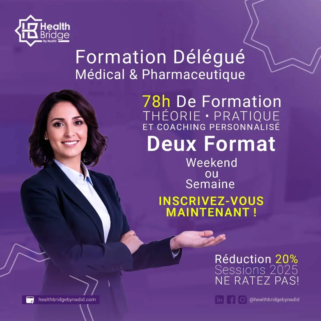 Cumulant plus de 12 ans d’expérience dans l’industrie pharmaceutique, un univers reconnu pour sa rigueur, ses standards élevés et sa dynamique d’innovation , j’ai fondé Health Bridge by NadID pour accompagner les acteurs qui souhaitent transformer leurs idées en solutions concrètes, utiles et durables — au service du patient.